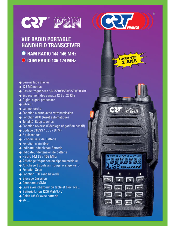 • Frequentiebereik: VHF TX: 144 – 146 MHz, 136 – 174 MHz